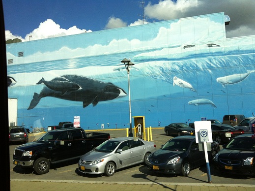 the hot tubs, the sauna, the casino – other fun but entirely alien entertainments. The bus for the jeep tour left at 8:30 next morning and then we were suddenly bouncing around the countryside of the Tongass National Forest. The wilderness was overwhelming – the rivers and lakes and water – and then we arrived at the Harriet Hunt Lake, where we got into these canoes and paddled across the lake for a little snack and a nature walk in the forest. Back in Ketchikan we rested at the Asylum Cafe – a place with a great theme and a great name, but not such a nice reception. The ship with its elegance welcomed us back but it was such a contrast to our day. Or was it? Maybe that’s why we went for sushi on the top deck instead of the elegant dinner we were expected to eat. The next morning we were up at 6 for a whale watch at 8. Maybe the whales were particularly responsive because the weather was so amazing but it was a real party. I lost count after the first dozen blew in unison, the mothers paraded their calves, the tails flipped wherever we looked.