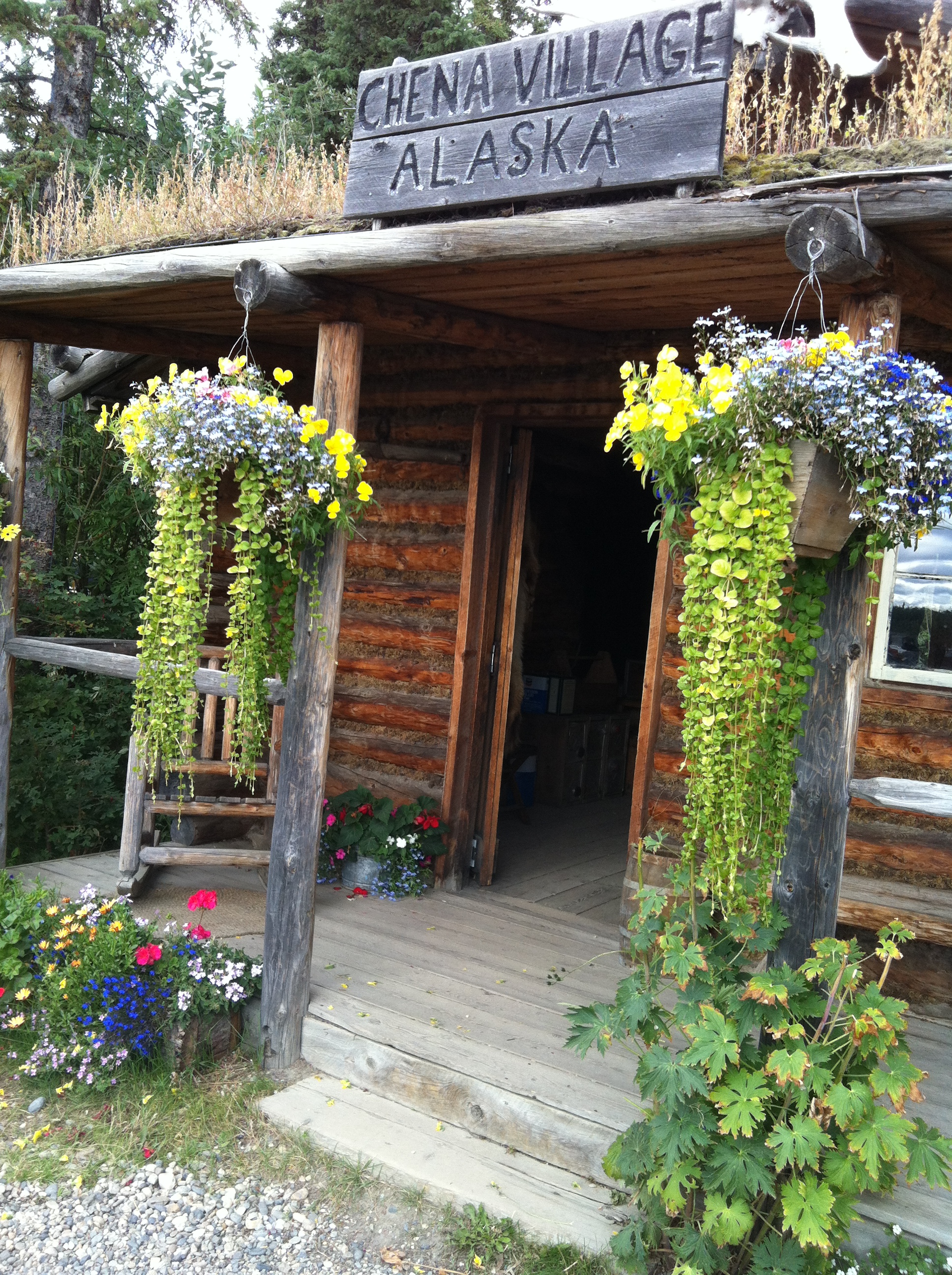 The Wilderness Express took us to Talkeetna today. The train ride, with its glass ceiling on the top of the double decker car and breakfast in the dining car below, is the ultimate in green luxury. We’re staying at the The Wilderness Lodge having spent the day in lovely downtown Talkeetna,