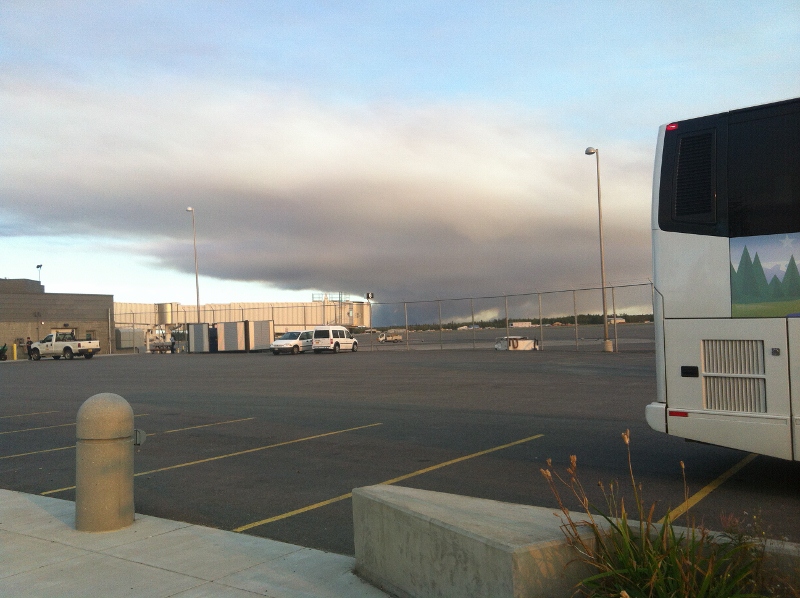 or Fairbanks As we rode into Fairbanks yesterday we saw a little black cloud – a forest fire, we were told. We get lots of them here. As we left, the sun was setting behind a dark grey covered firmament. 38000 acres we were told, but it’s on military property and not endangering anyone and on the other side of the river so by Alaskan law they’re not doing anything about it. 38,000 acres! That’s – what – half of Israel! Think about the fuss the fire in the Carmel caused last year – think of the animals, the lives, the animals, the birds. I couldn’t fathom it, and maybe it’s just that people don’t like to show their worries around here in front of the tourists, but I don’t see how all the television channels weren’t covering it live. It’s like saying because it was an act of God – lightning – it’s what God wanted.