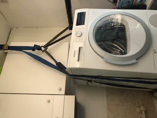 Neither of the movers marveled at the contraption Ezi installed to ease the moving of the washing machine, upon which sits a big dryer. this dryer's up in the sky until tomorrow!