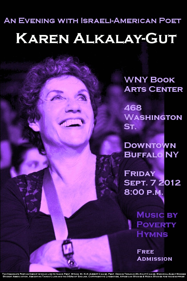 Wednesday evening I'm reading my poetry and Thursday translations from Hebrew and Arabic poetry